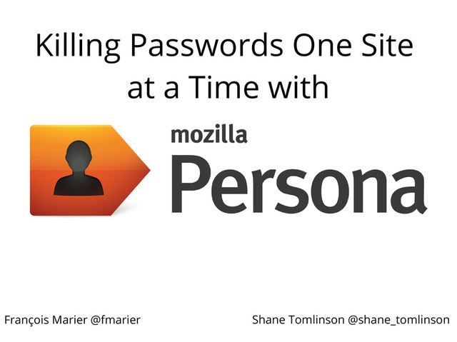 There are too many passwords in the world. Mozilla Persona is a fully decentralized, federated, privacy respecting login system that kills passwords one site at a time.