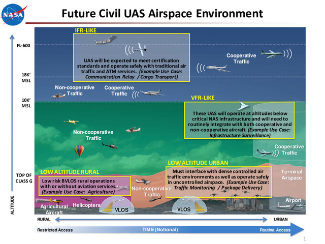 Operations Technologies T02 - Airworthiness Standards T03 – Command, Control, Communications (C3) T04 - Detect & Avoid (DAA) T05 - Flight & Health Mngmt Systems T06 - GCS Technologies T07 - Hazard Avoidance T08 - Highly Automated Architectures T09 – Navigation T10 - Power & Propulsion T11 - Weather Public Acceptance & Trust: A01 - Cybersecurity Criteria & Methods of Compliance A02 - Legal & Privacy Rules / Guidelines A03 – Noise Reductions A04 - Physical Security Criteria & Methods of Compliance A05 - Public Safety Confidence Operational Regulations, Policies & Guidelines: P01 - ATM Regulations / Policies / Procedures P02 - Airworthiness Regulations / Policies / Guidelines P03 - Operating Rules / Regulations / Procedures P04 - Safety Risk Mngmt & Methods of Compliance ATM Services & Infrastructure: I01 - Airport Infrastructure I02 - ATM Infrastructure I03 - Non-FAA Managed Airspace Infrastructure I04 - RF Spectrum Availability I05 - Test Ranges & M&S Facilities