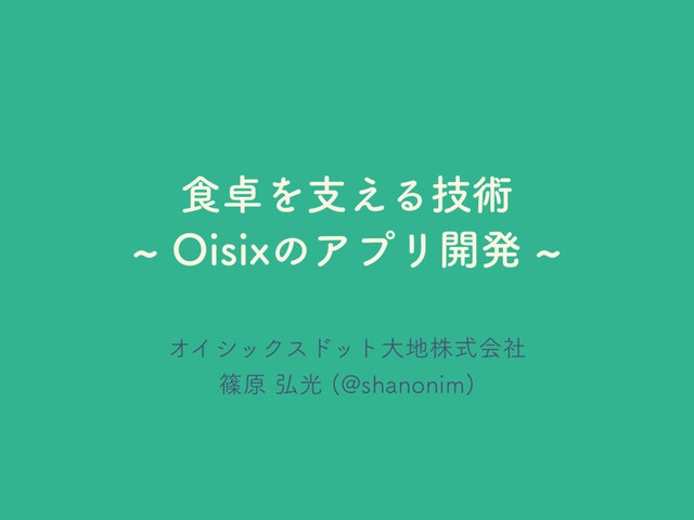 ৯Λࢧ͑Δٕज़ d0JTJYͷΞϓϦ։ൃd ΦΠγοΫευοτେגࣜձࣾ ࣰݪ߂ޫ !TIBOPOJN