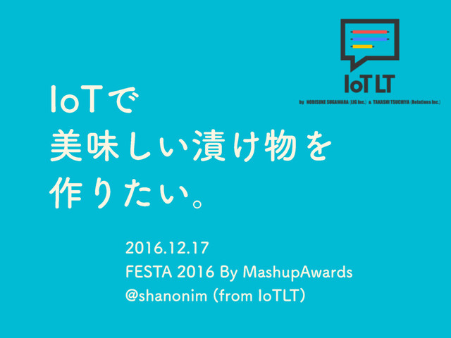 IoTで美味しい漬け物を作りたい。 / make good pickles with IoT (FESTA2016)