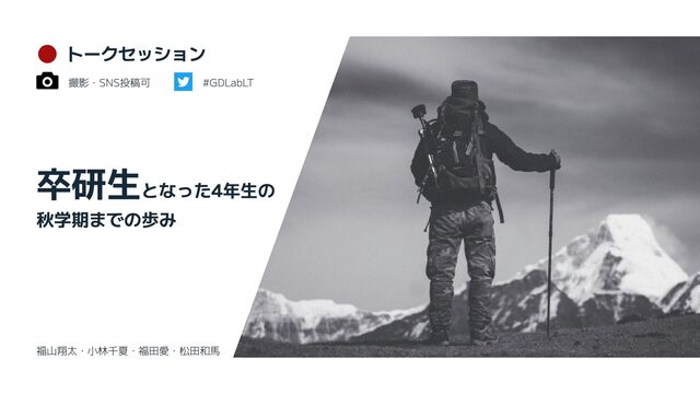 撮影・SNS投稿可 トークセッション 卒研生となった4年生の 秋学期までの歩み 福山翔太・小林千夏・福田愛・松田和馬 #GDLabLT