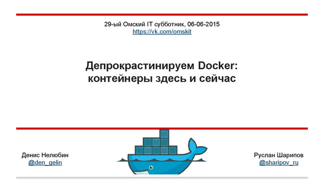 Депрокрастинируем Docker: контейнеры здесь и сейчас (мастер-класс). Руслан Шарипов (7bits), Денис Нелюбин (Avelix).