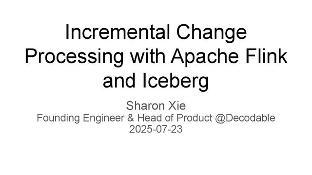 In this talk, we’ll explore how to implement incremental change processing over Iceberg V2 using Apache Flink, by writing change data streams as append tables and reading append tables as change streams. We’ll also walk through trade-offs between append and upsert modes, and how to choose the right one for your workload.
