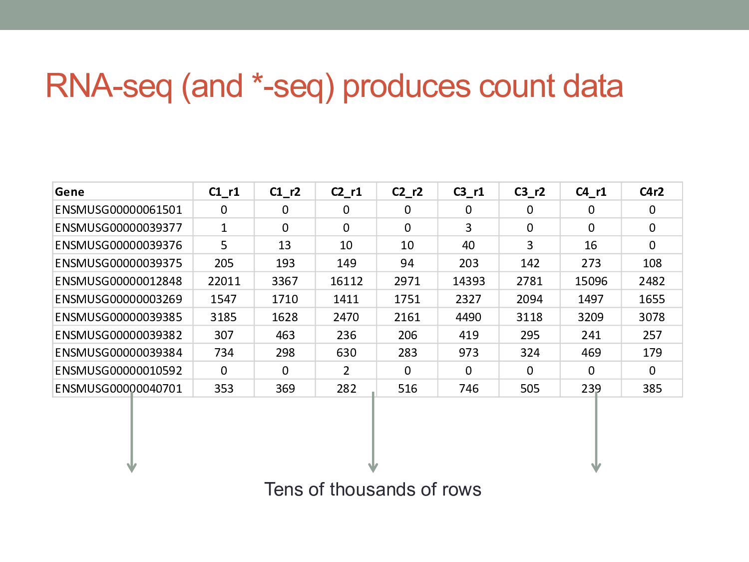 6. RNA-seq (and *-seq) produces count data Gene C1_r1 C1_r2 C2_r1