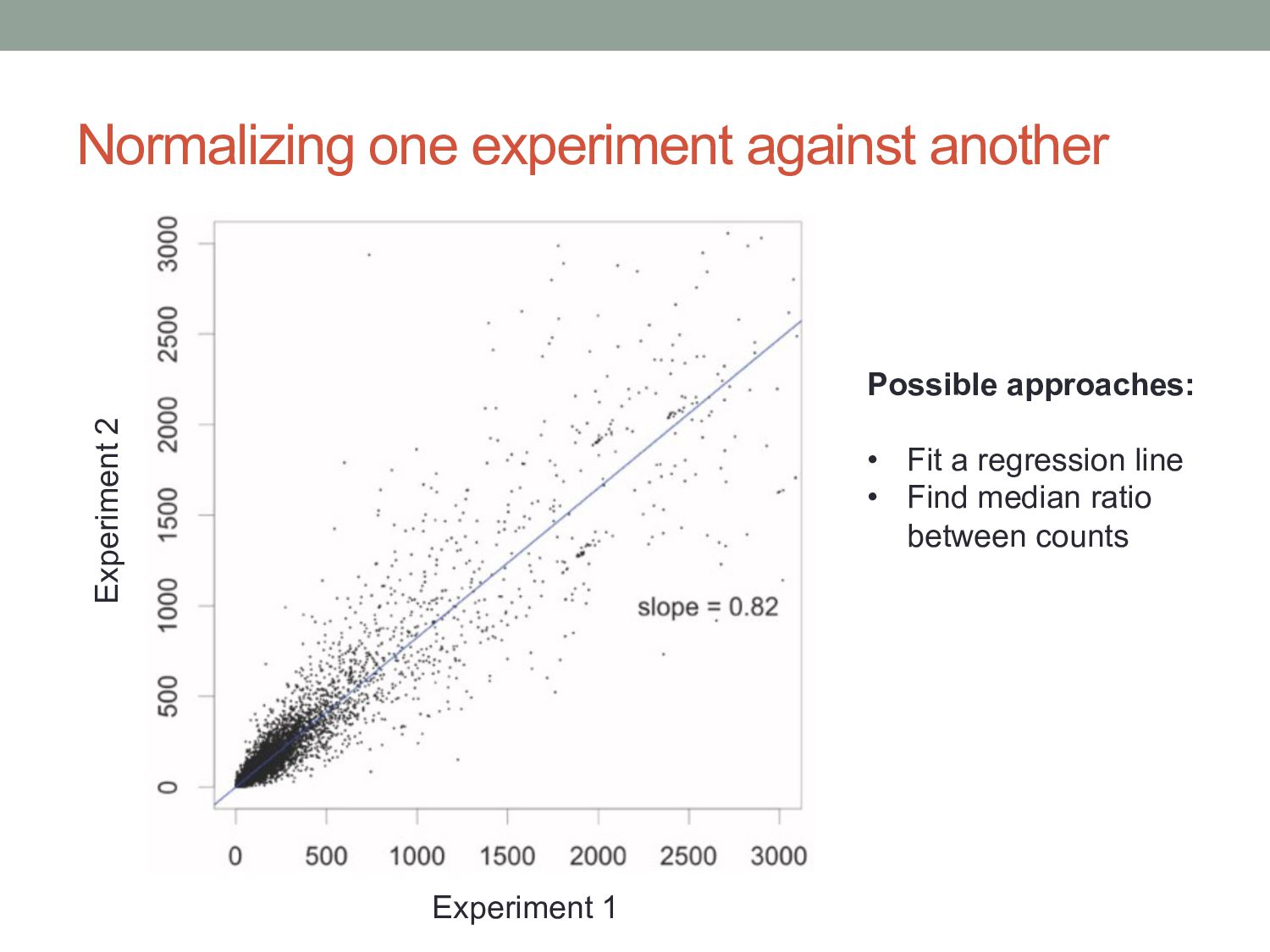 9. Normalizing one experiment against another Experiment 1 Experiment 2 Possible