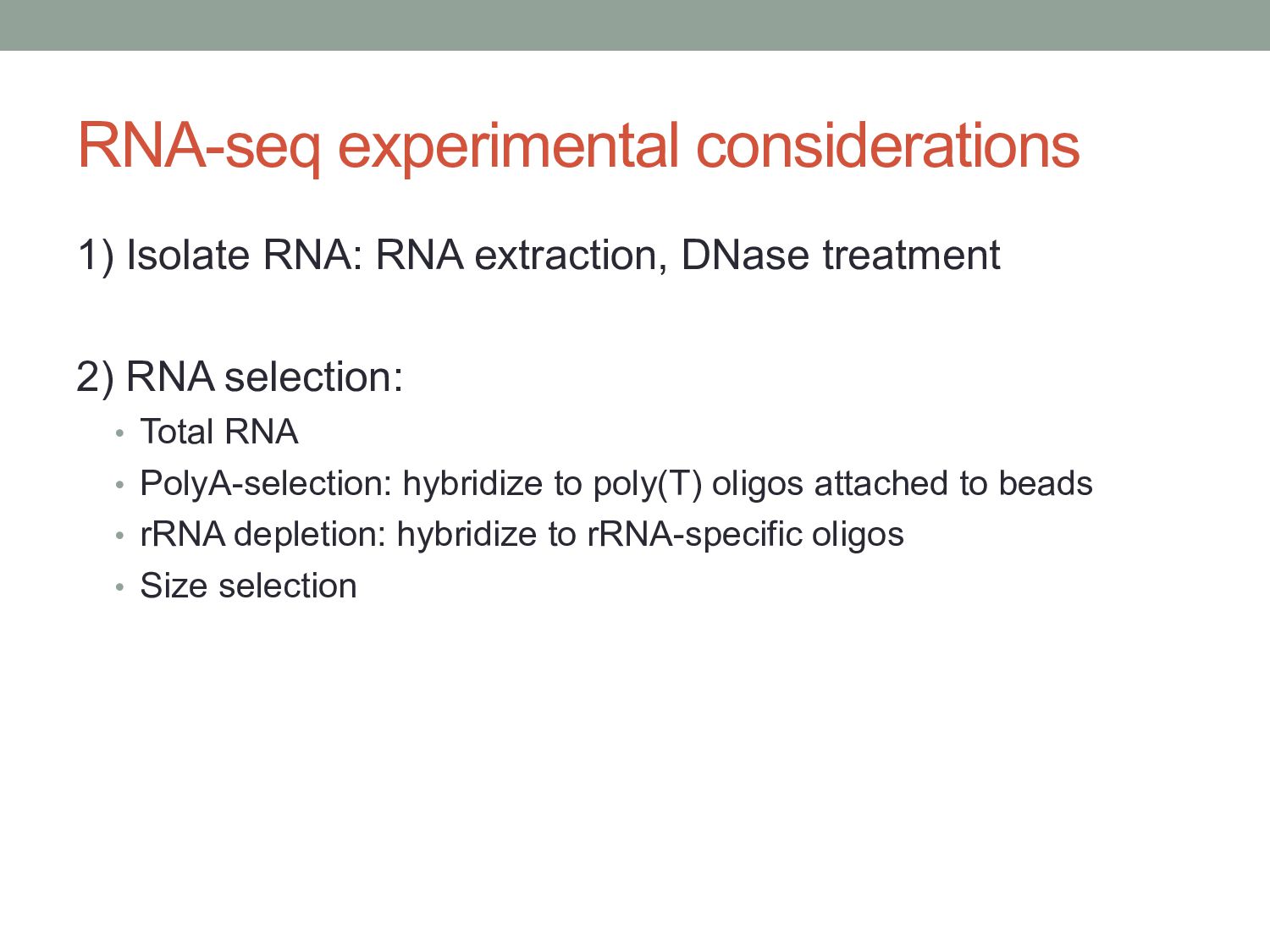 2. RNA-seq experimental considerations 1) Isolate RNA: RNA extraction, DNase treatment