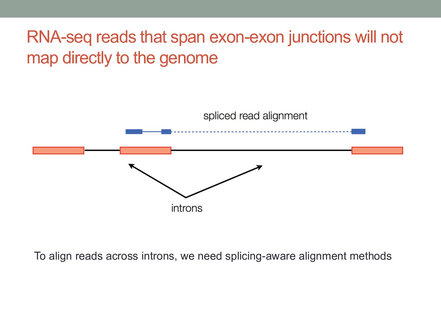 to the genome To align reads across introns, we need splicing-aware alignment methods