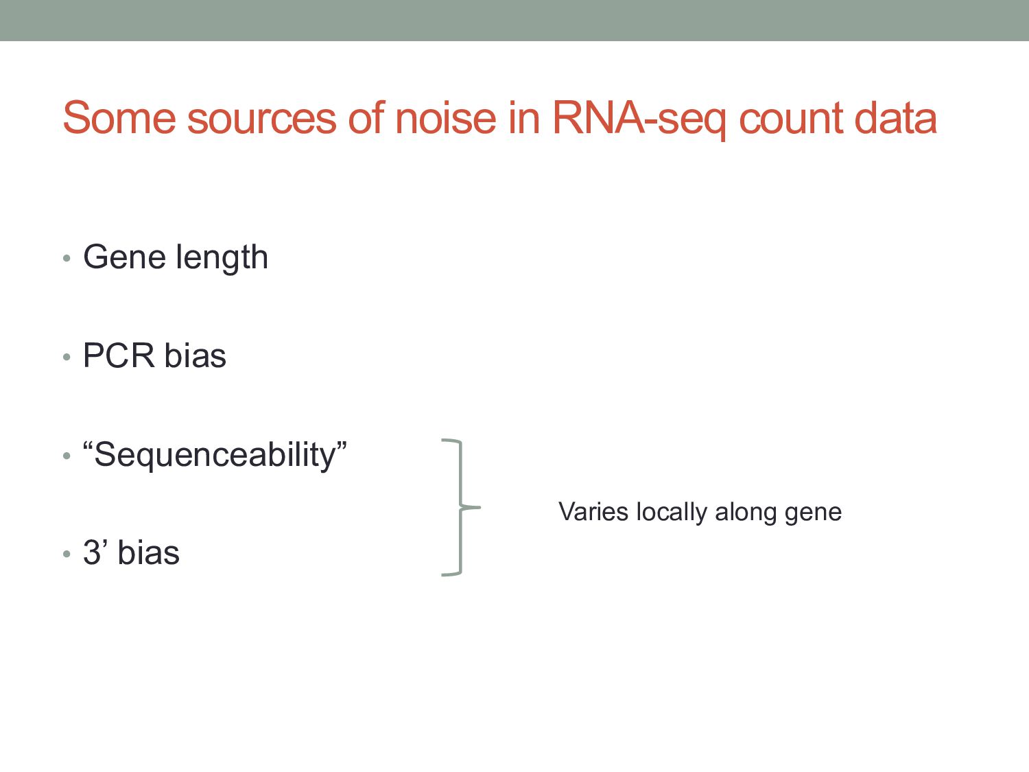 length • PCR bias • “Sequenceability” • 3’ bias Varies locally along gene