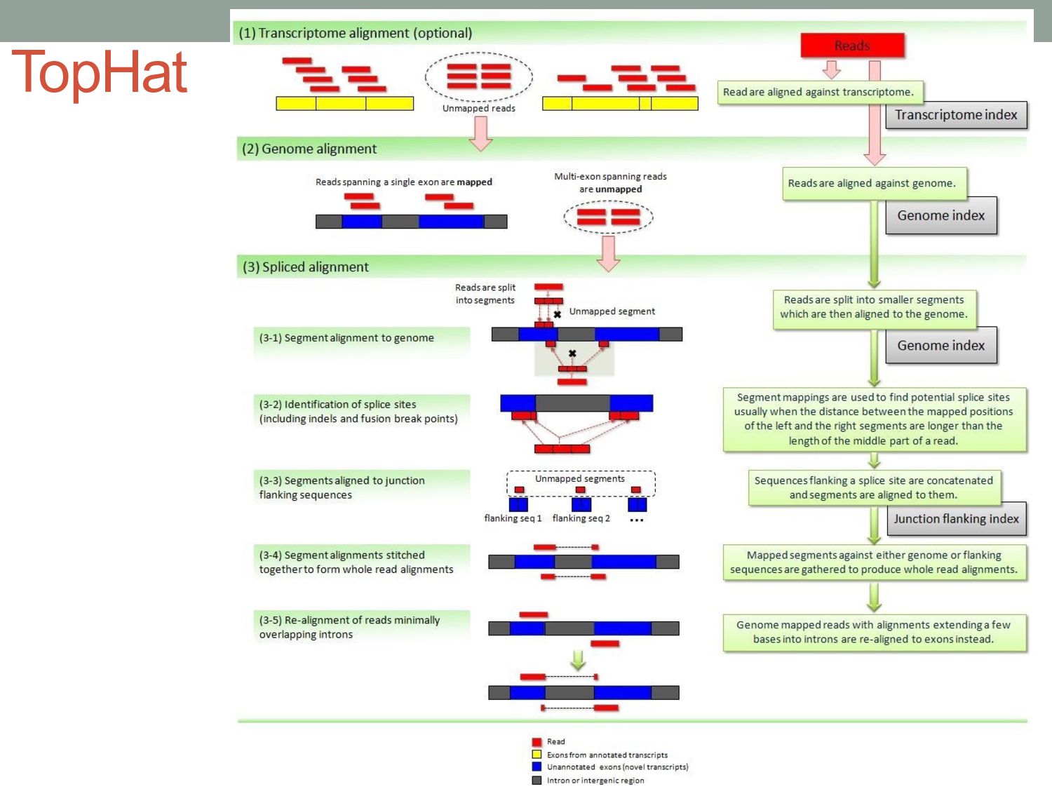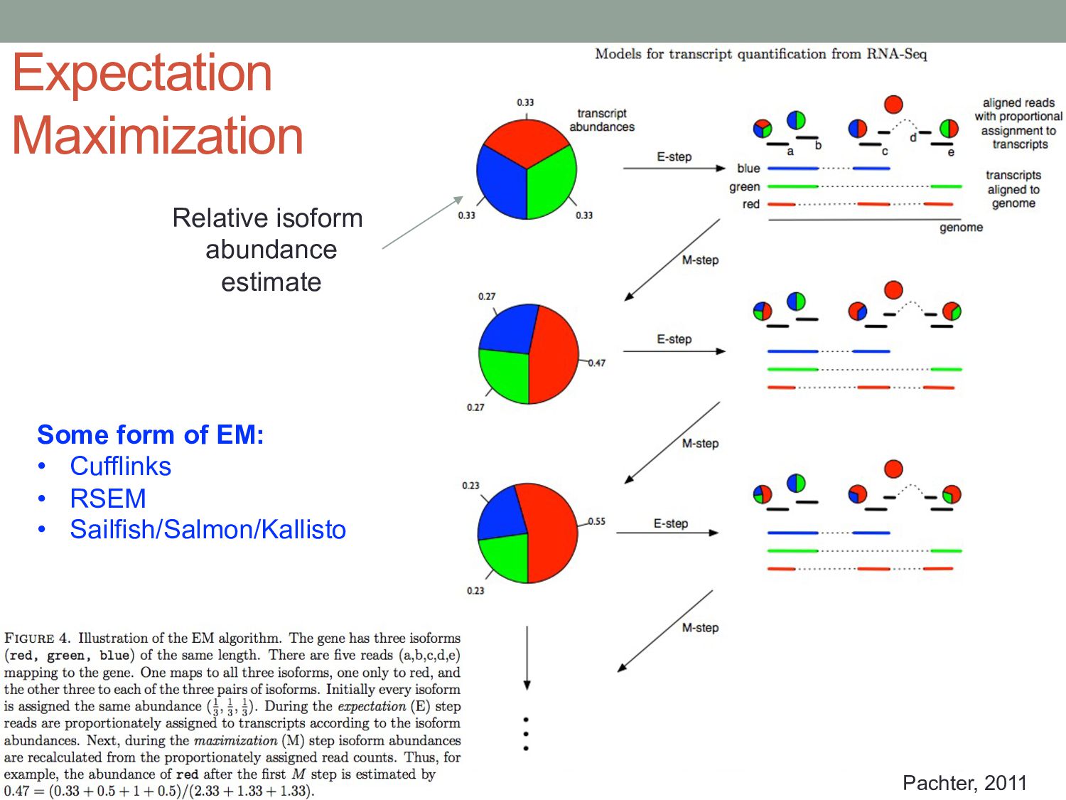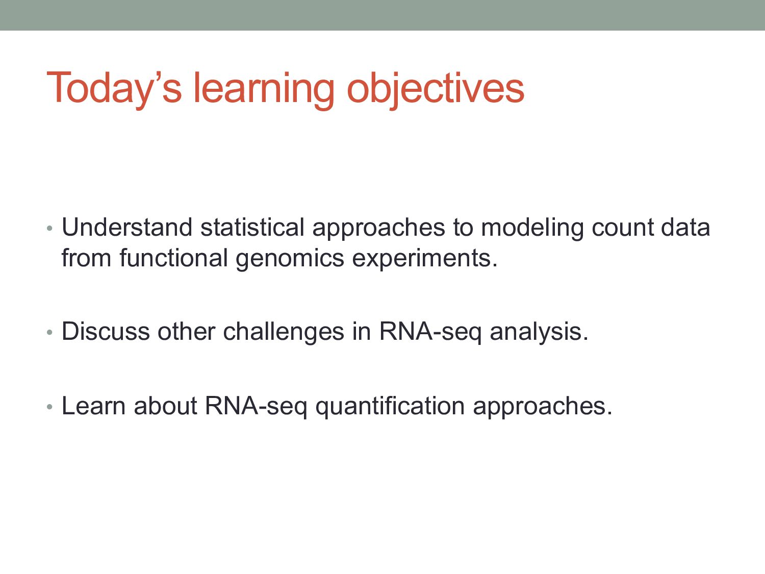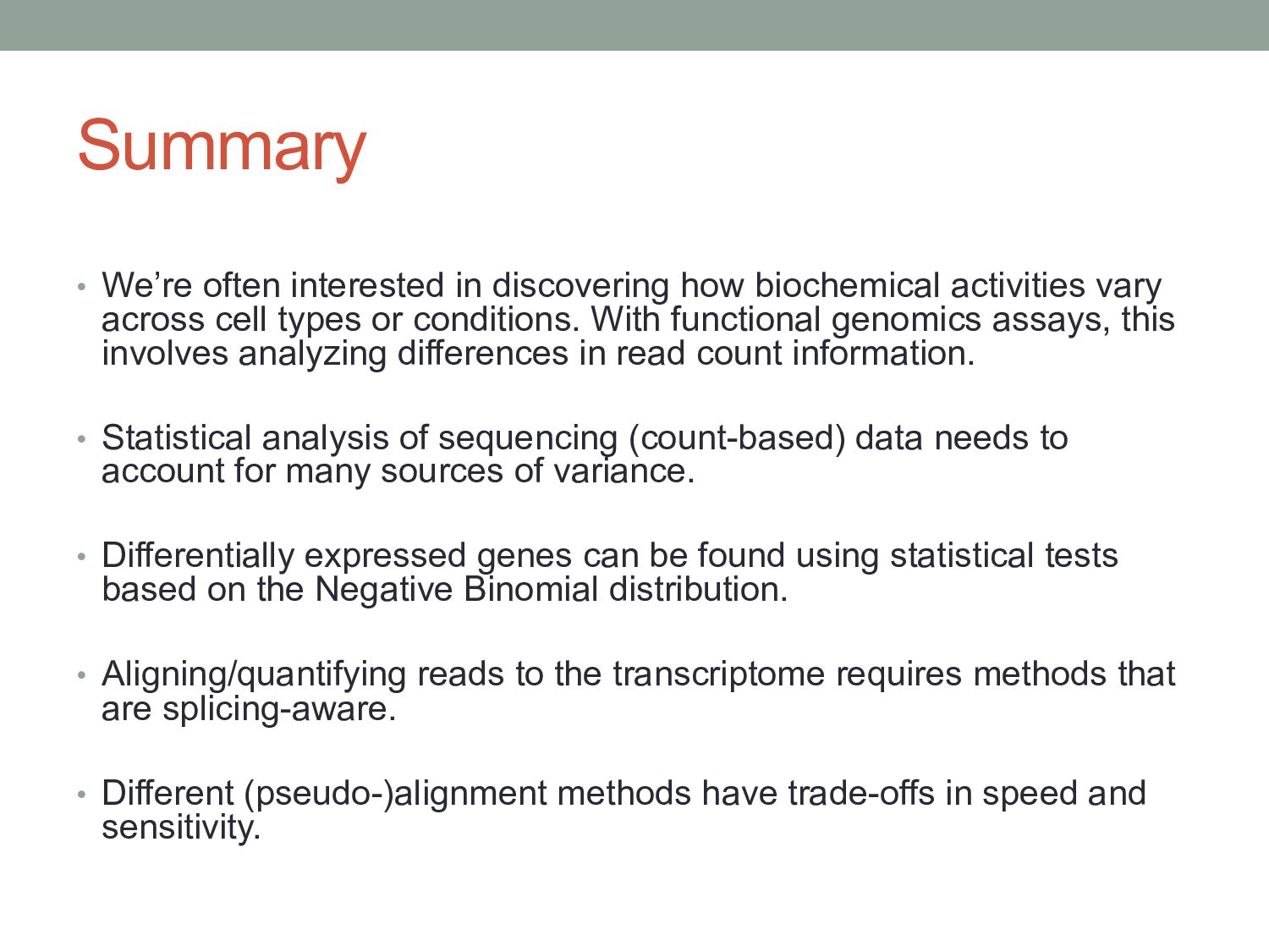 i, test two alternate hypotheses: 1. The level of expression is the same in both conditions. 2. The level of expression is different across conditions. • Likelihood ratio: qi0 defined by combining samples from conditions A & B • Convert to p-value using χ2 distribution. • Correct for multiple hypothesis testing. NB(K iA | S A ,νiA ,q iA )NB(K iB | S B ,νiB ,q iB ) NB(K iA | S A ,νi0 ,q i0 )NB(K iB | S B ,νi0 ,q i0 )