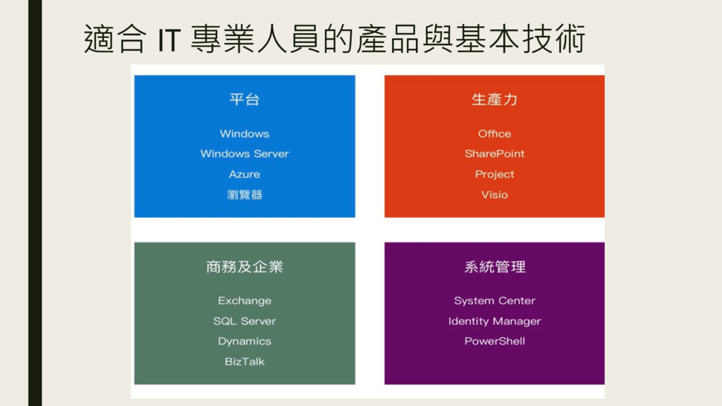 適合 IT 專業人員的產品與基本技術