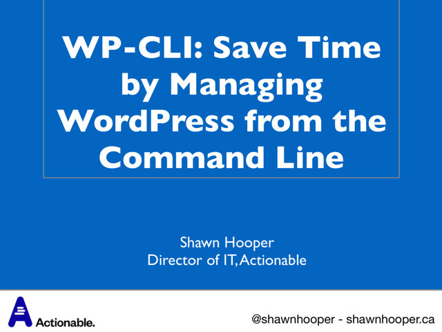 Slides from the Introduction to WP-CLI talk that I've given at WordCamps and Meetups. For my blog posts about WP-CLI, see https://www.shawnhooper.ca/tag/wp-cli/