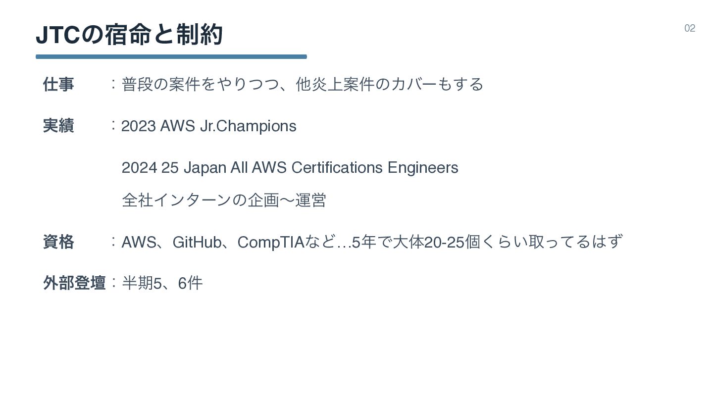 JTCͷ໋॓ͱ੍ 02 ࣄ ɿීஈͷҊ݅ΛΓͭͭɺଞԌ্Ҋ݅ͷΧόʔ͢Δ ࣮ ɿ2023 AWS Jr.Champions 2024 25
