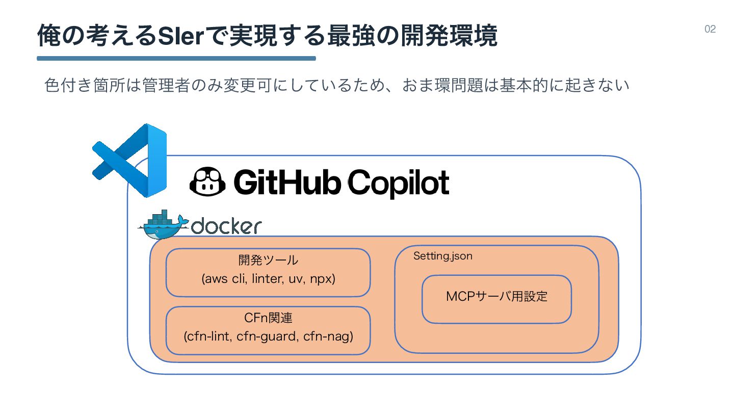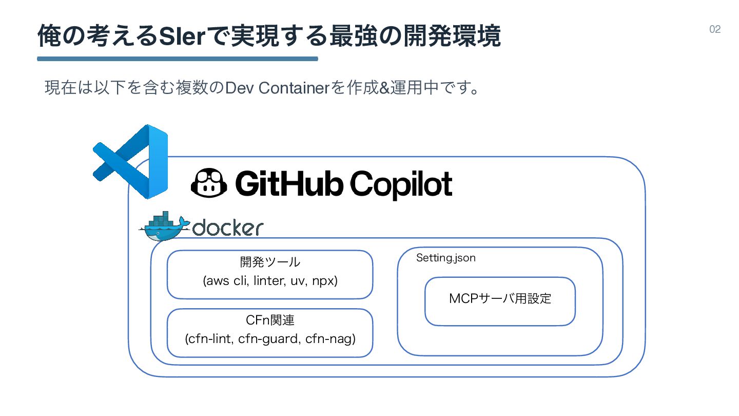 Զͷߟ͑ΔSIerͰ࣮ݱ͢Δ࠷ڧͷ։ൃڥ 02 ݱࡏҎԼΛؚΉෳͷDev ContainerΛ࡞&ӡ༻தͰ͢ɻ 4FUUJOHKTPO ։ൃπʔϧ BXTDMJ MJOUFS VW OQY