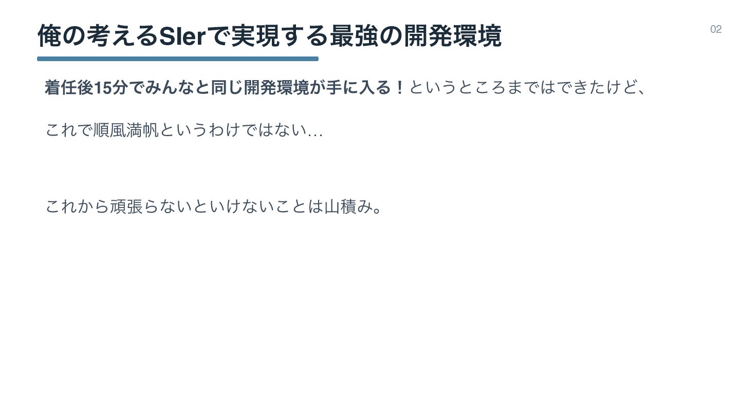 Զͷߟ͑ΔSIerͰ࣮ݱ͢Δ࠷ڧͷ։ൃڥ 02 ணޙ15ͰΈΜͳͱಉ͡։ൃڥ͕खʹೖΔʂͱ͍͏ͱ͜Ζ·ͰͰ͖͚ͨͲɺ ͜ΕͰॱ෩ຬൕͱ͍͏Θ͚Ͱͳ͍… ͜Ε͔ΒؤுΒͳ͍ͱ͍͚ͳ͍͜ͱࢁੵΈɻ