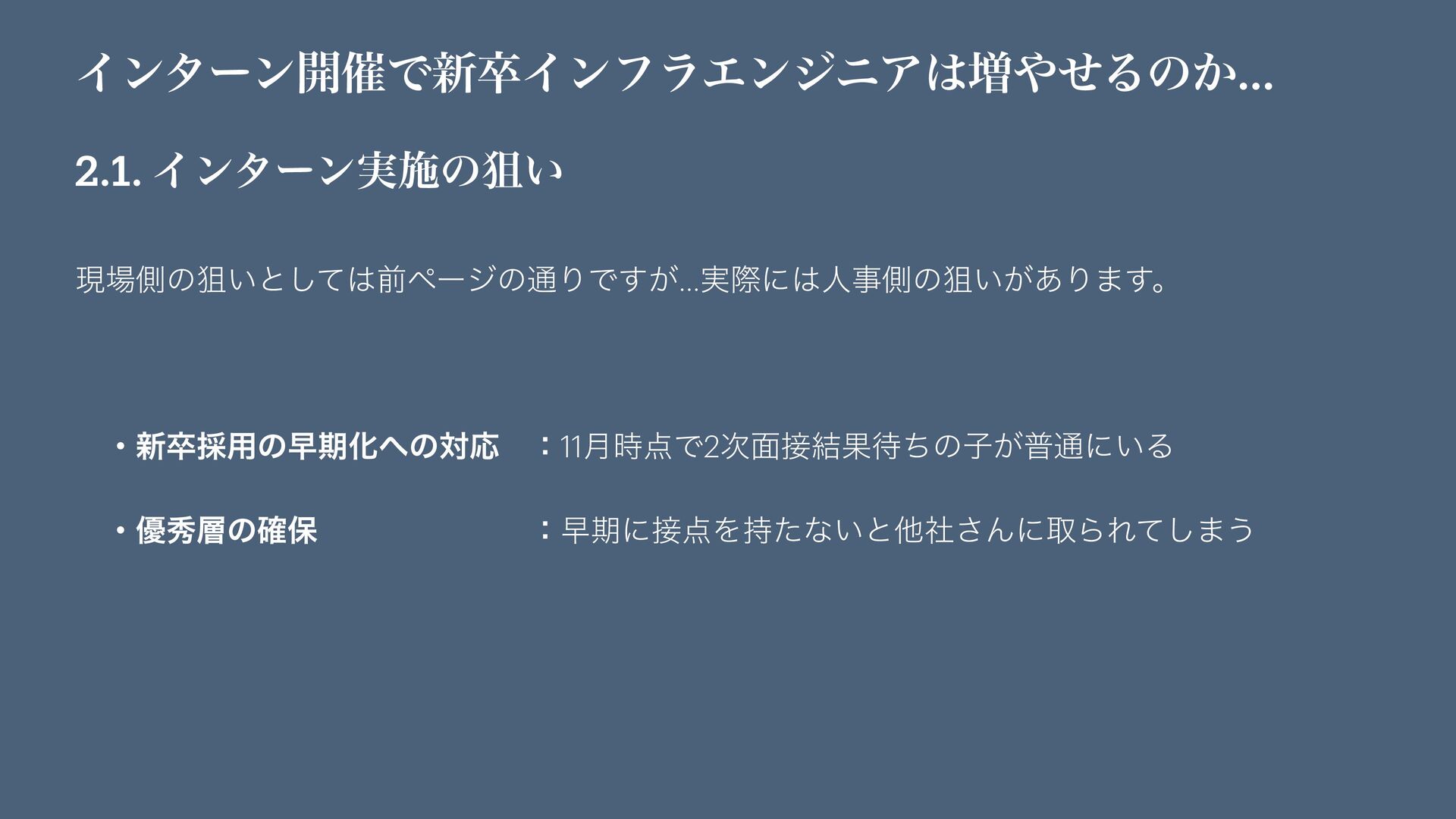 インターン開催で新卒インフラエンジニアは増やせるのか…