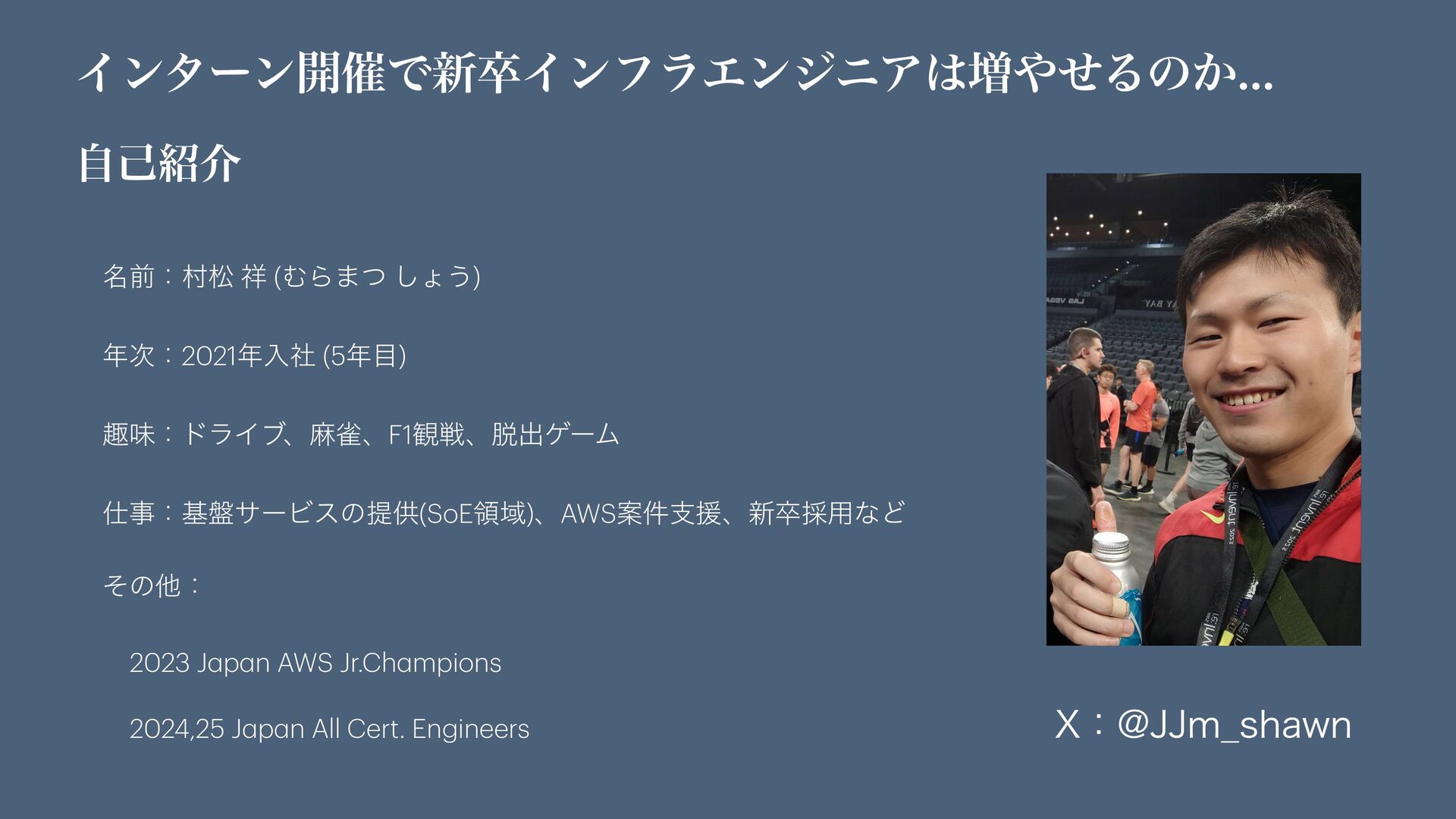 Πϯλʔϯ։࠵Ͱ৽ଔΠϯϑϥΤϯδχΞ૿ͤΔͷ͔… ࣗݾհ ໊લɿଜদ (ΉΒ·ͭ ͠ΐ͏) ࣍ɿ2021ೖࣾ (5) झຯɿυϥΠϒɺຑɺF1؍ઓɺग़ήʔϜ ࣄɿج൫αʔϏεͷఏڙ(SoEྖҬ)ɺAWSҊ݅ࢧԉɺ৽ଔ࠾༻ͳͲ