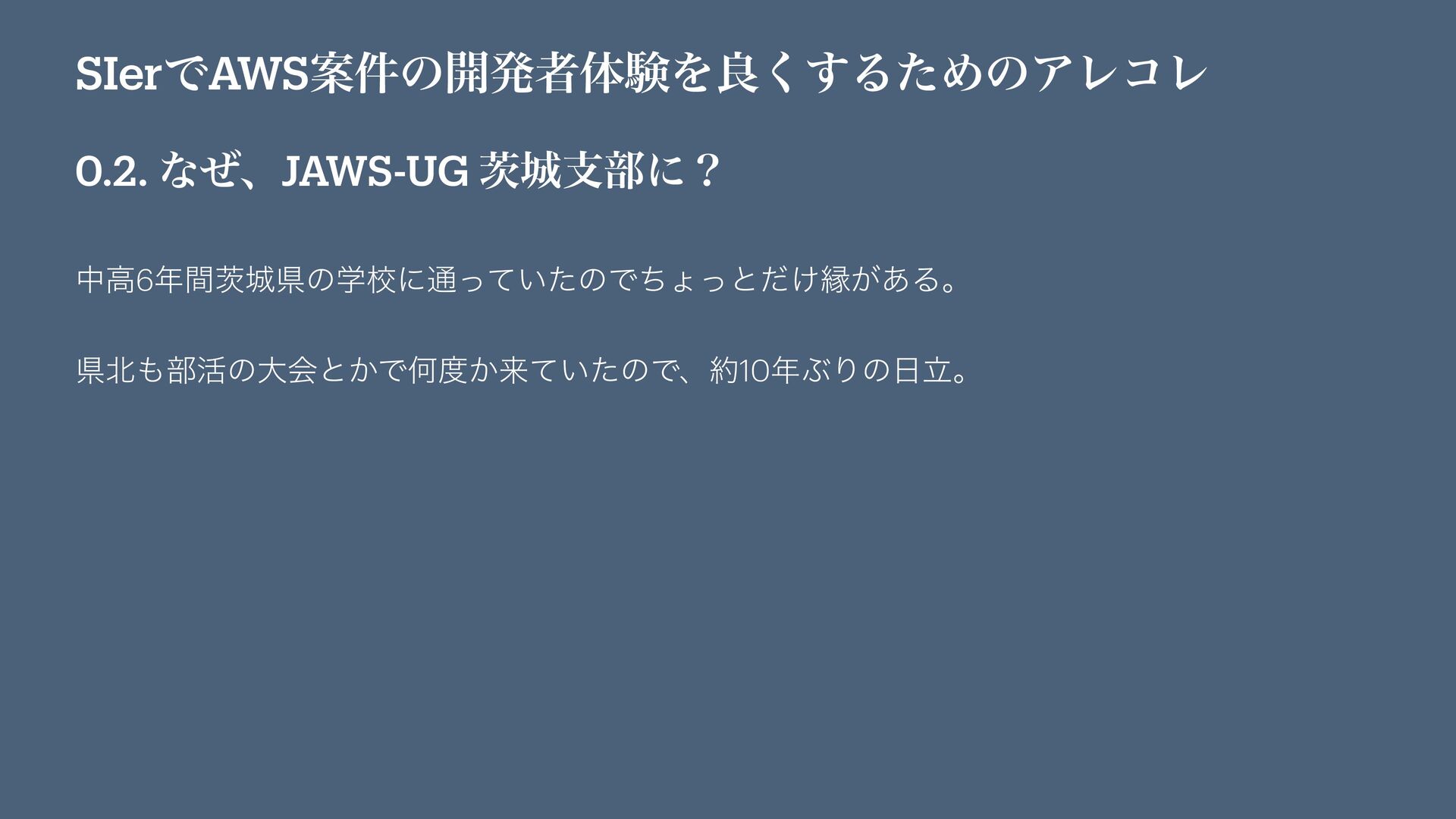 SIerͰAWSҊ݅ͷ։ൃऀମݧΛྑ͘͢ΔͨΊͷΞϨίϨ 0.2. ͳͥɺJAWS-UG Ἒࢧ෦ʹʁ தߴ6ؒἚݝͷֶߍʹ௨͍ͬͯͨͷͰͪΐͬͱ͚ͩԑ͕͋Δɻ ݝ෦׆ͷେձͱ͔ͰԿ͔དྷ͍ͯͨͷͰɺ10ͿΓͷཱɻ