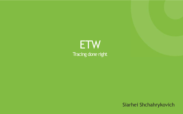 ETW Tracing done right Siarhei Shchahrykovich