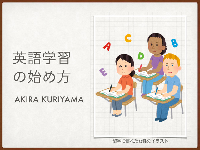 ӳޠֶश ͷ࢝Ίํ AKIRA KURIYAMA 留留学に慣れた⼥女女性のイラスト