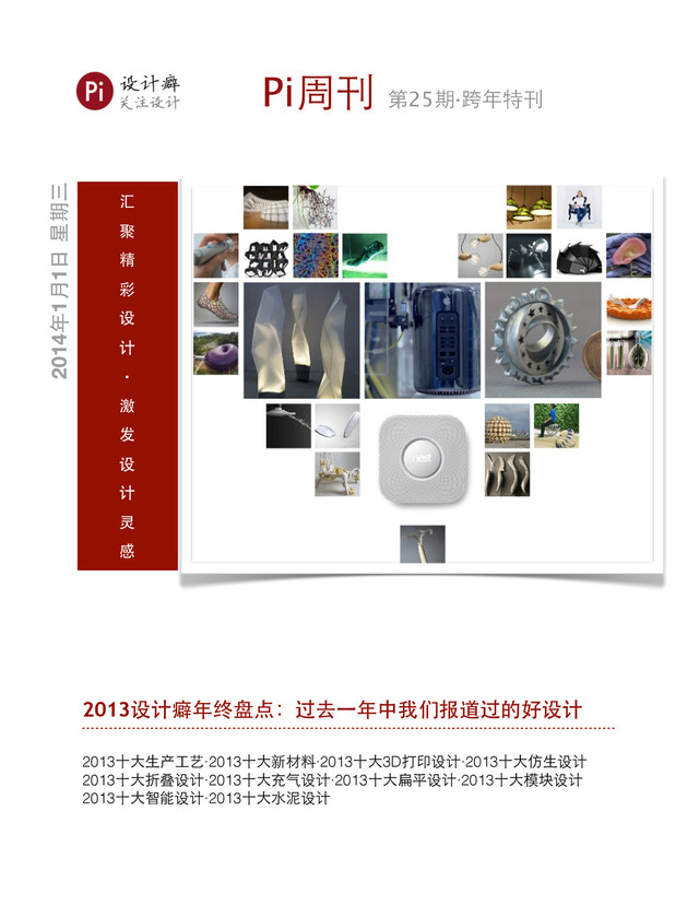 的科研⼈人员将脆性硅晶⽚片打印成很⼩小的薄⽚片,然后将其排成波浪 形结构,从⽽而克服了脆性问题。 Rogers表⽰示这种「体表电⼦子设备(epidermal electronics)」可以⽤用于 研制保健产品,⽆无需将其连接到⼤大型机器上就可以监测病⼈人信息,不仅 更⽅方便,⽽而且⽐比起在医院检测,在⽇日常⽣生活中使⽤用所得数据更精确。 普林斯顿⼤大学设计出3D 打印⽿耳朵 普林斯顿⼤大学的⼀一个纳⽶米科学家⼩小组通过3D打印技术打印出了⼀一只仿 ⽣生⽿耳朵,把电⼦子元件和⽣生物材料结合到⼀一起,⽤用灵活柔软的3D打印⽿耳 朵来代替传统的机器假⽿耳朵。 Pi周刊第25期·跨年特刊 设计癖:关注设计 16/112
