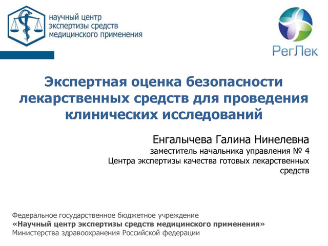 Галина Нинелевна заместитель начальника управления № 4 Центра экспертизы качества готовых лекарственных средств Федеральное государственное бюджетное учреждение «Научный центр экспертизы средств медицинского применения» Министерства здравоохранения Российской федерации