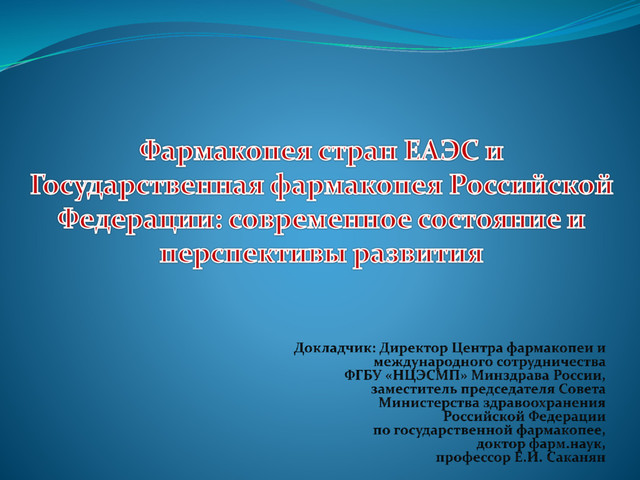 обращении в рамках ЕАЭС - Заключение Договора о Евразийском экономическом союзе (от 29 мая 2014 года) - Подписание Соглашения о единых принципах и правилах обращения лекарственных средств в рамках Евразийского экономического союза (от 23 декабря 2014 года) - Формирование единой системы обеспечения качества лекарственных средств - Разработка Концепции гармонизации государственных фармакопей государств-членов Евразийского экономического союза и создание Фармакопеи Союза 4