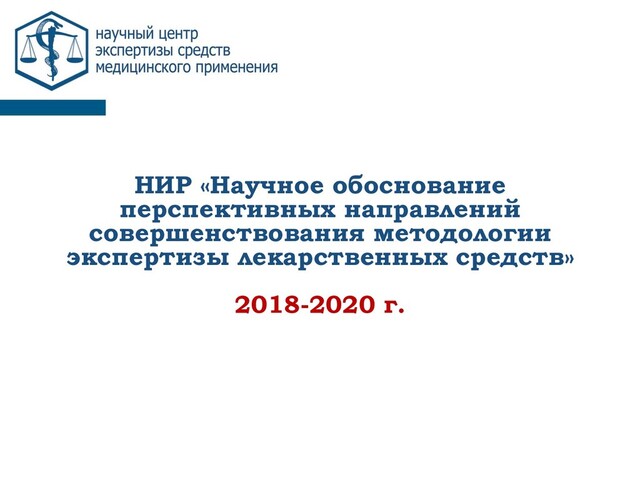методологии экспертизы качества, эффективности и безопасности лекарственных средств для медицинского применения. Решены актуальные задачи по систематизации требований современной нормативно-правовой базы, определяющей подходы к оценке качества, эффективности и безопасности лекарственных средств. Разработаны методические и методологические подходы к экспертизе лекарственных средств. Внедрение результатов НИР имеет высокую прикладную значимость, обусловленную важностью рассматриваемых вопросов. ИТОГ 2018-2020 11