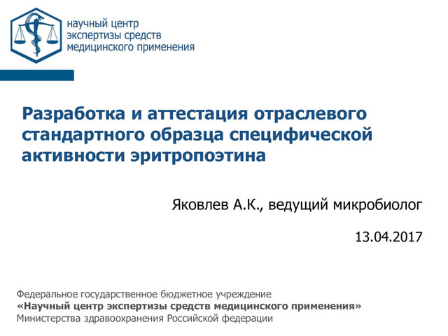 Яковлев А.К., ведущий микробиолог Федеральное государственное бюджетное учреждение «Научный центр экспертизы средств медицинского применения» Министерства здравоохранения Российской федерации