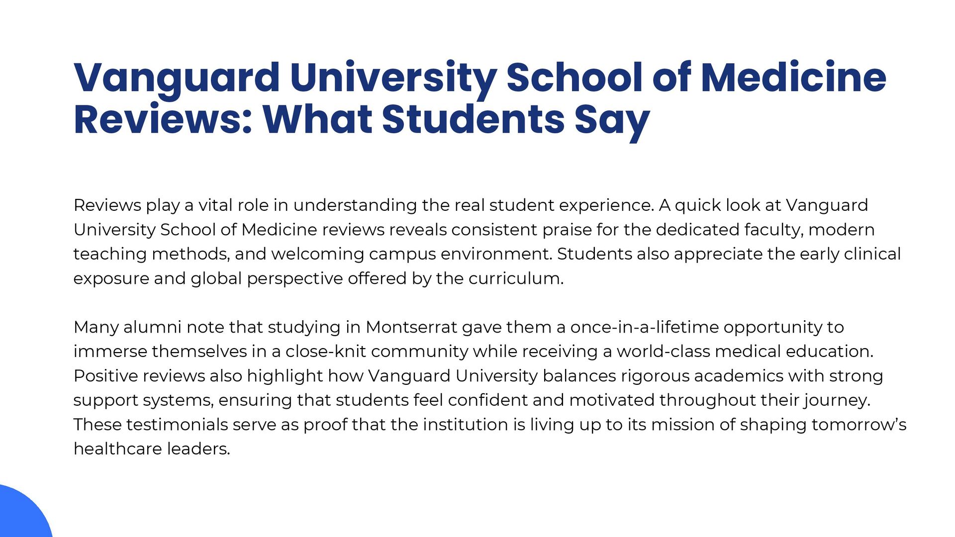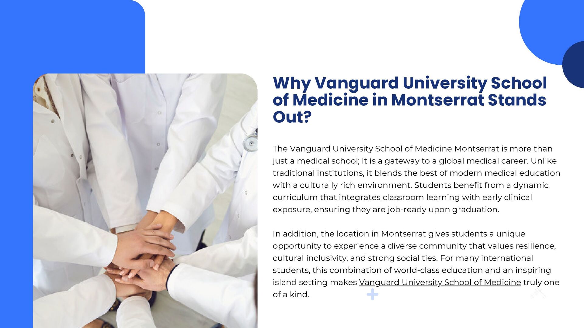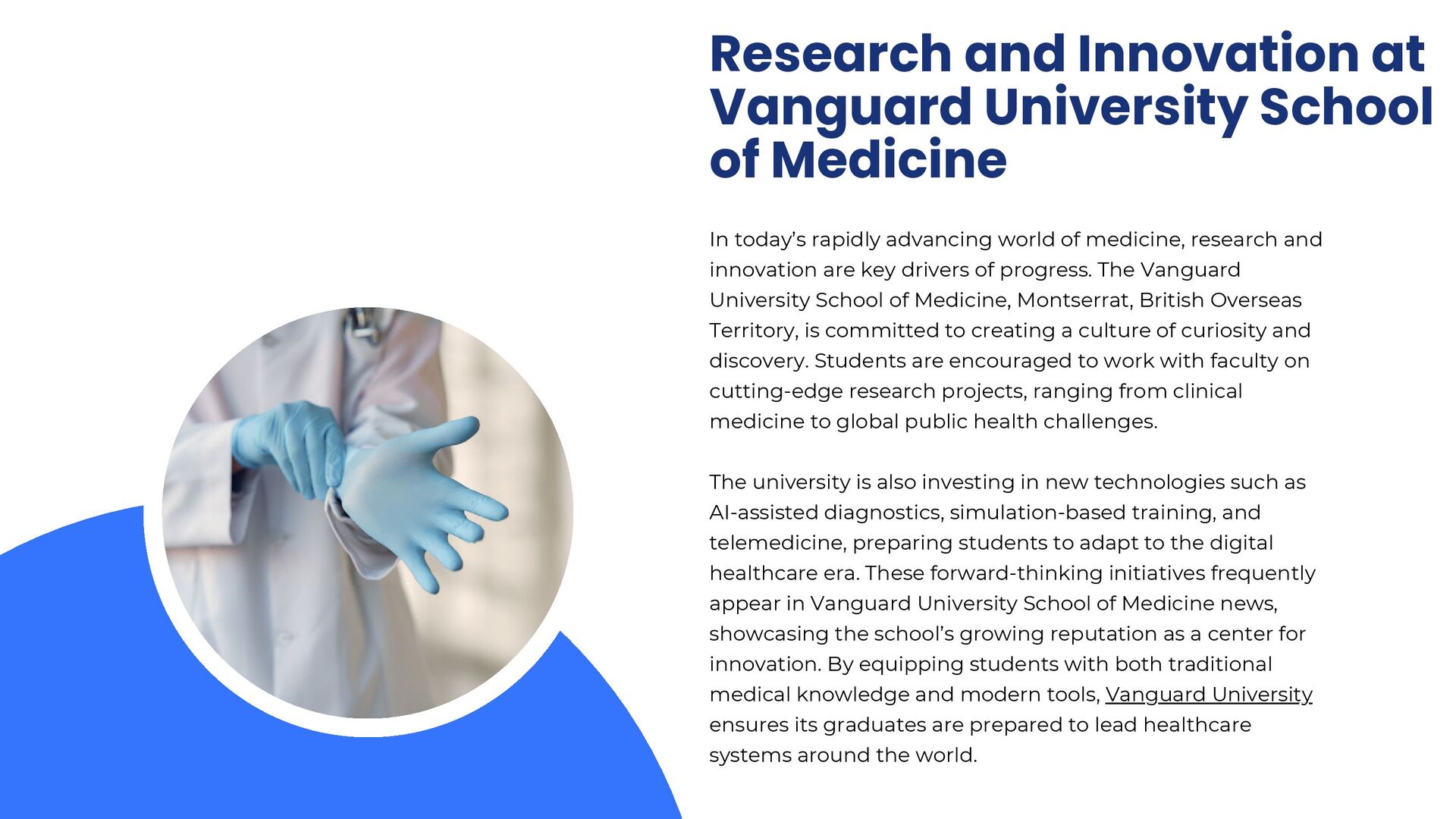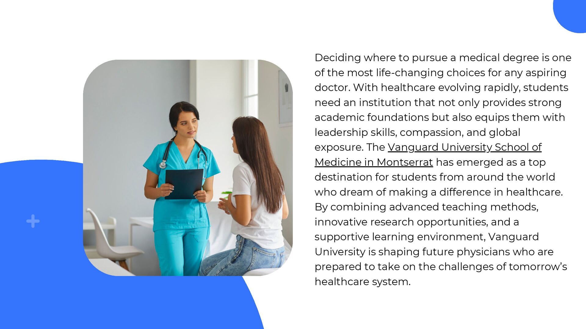 Deciding where to pursue a medical degree is one of the most life-changing choices for any aspiring doctor. With healthcare evolving rapidly, students need an institution that not only provides strong academic foundations but also equips them with leadership skills, compassion, and global exposure. The Vanguard University School of Medicine in Montserrat has emerged as a top destination for students from around the world who dream of making a difference in healthcare. By combining advanced teaching methods, innovative research opportunities, and a supportive learning environment, Vanguard University is shaping future physicians who are prepared to take on the challenges of tomorrow’s healthcare system.