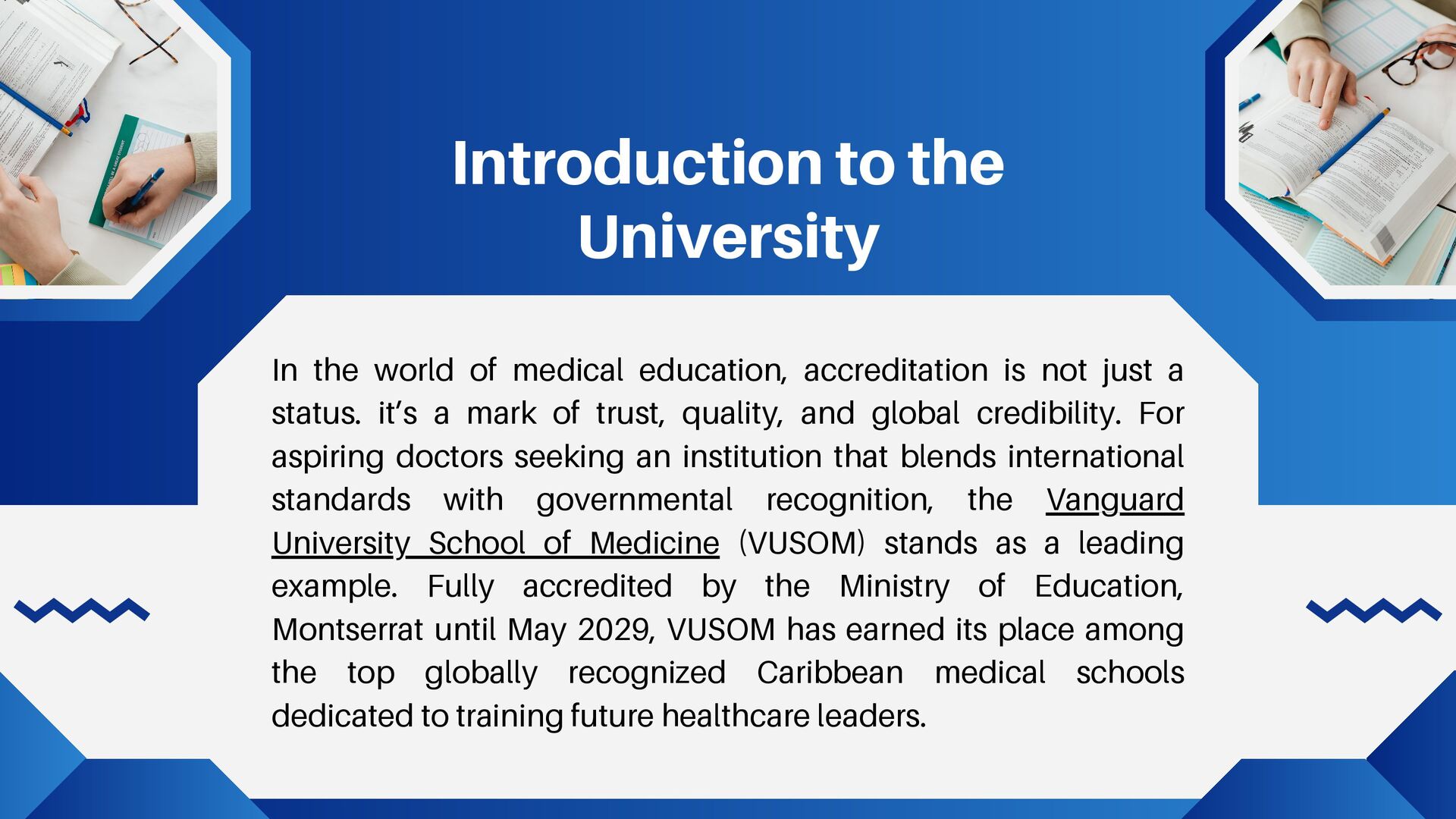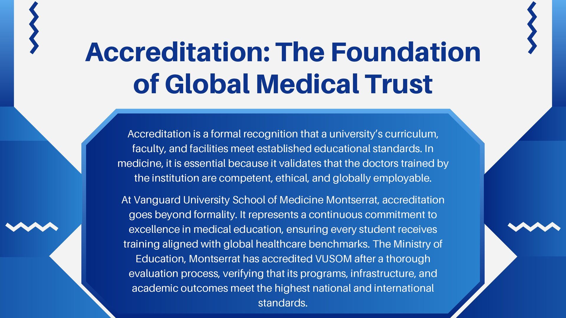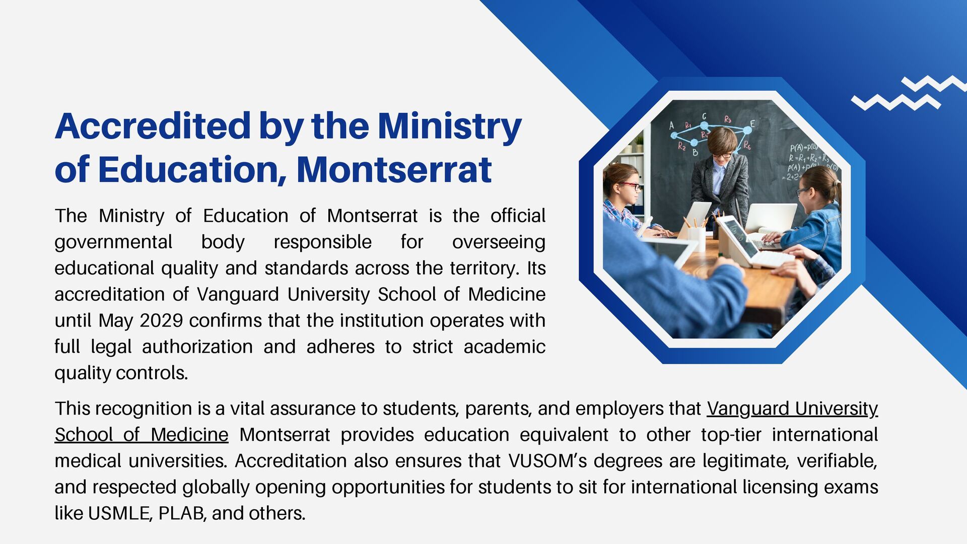 In the world of medical education, accreditation is not just a status it’s a mark of trust, quality, and global credibility. For aspiring doctors seeking an institution that blends international standards with governmental recognition, the Vanguard University School of Medicine (VUSOM) stands as a leading example. Fully accredited by the Ministry of Education, Montserrat until May 2029, VUSOM has earned its place among the top globally recognized Caribbean medical schools dedicated to training future healthcare leaders.