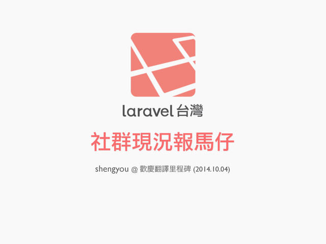 - መፌڻ㬯 Laravel څ㟬త5ݸڻ୰ᥒ • Eugene & Ronald - FlyingV Laravel + AWS ៃᱛڗ • Seta - Laravel x RESTful x AWS લᢛ PHP ༗ Day ෆఆظ߹㭎ڗᡉ ။ɼᬐࣾ܈㚎༗ៃᱛతᆿڗᢛ Laravel ༗᮫తओɻ ˒ ׆ಈل㑚ɿhttp://bit.ly/1uD12TC ˒ ׆ಈل㑚ɿhttps://github.com/laravel-taiwan/meetups