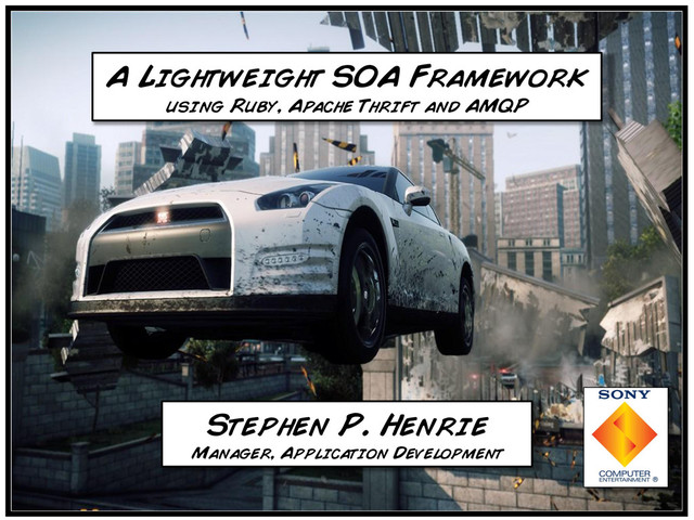This talk will demonstrate one approach to implementing just such a system; focusing on a Ruby implementation of Service functionality and a lightweight RPC framework based on the Apache Thrift protocol specification and AMQP for messaging transport.
