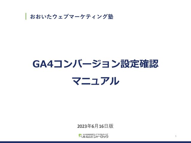 1 おおいたウェブマーケティング塾 GA4コンバージョン設定確認 マニュアル 2023年6⽉16⽇版