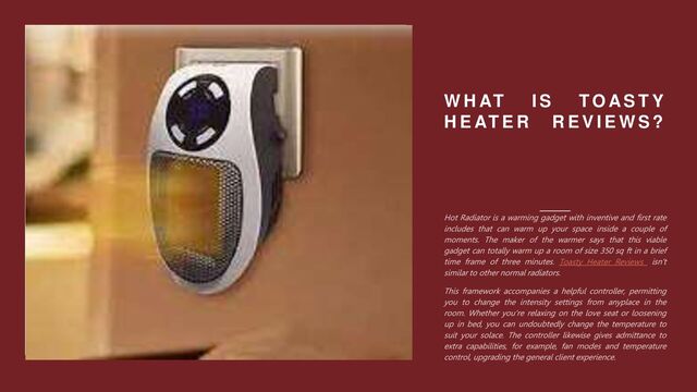 Toasty Heater Reviews In any case, we as a whole expertise expensive the purported productive warmers are and with the festival coming soon, the larger part probably won't have the option to burn through a great many dollars on a solitary gadget. On the off chance that you are one among these individuals, read this Toasty Heater Reviews survey to find out about a radiator that can warm up an entire room inside a couple of moments and falls under the classification of reasonable.