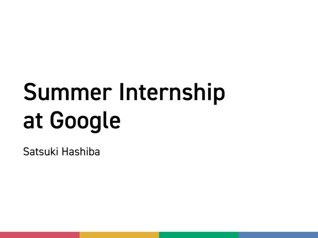 Summer Internship at Google Satsuki Hashiba