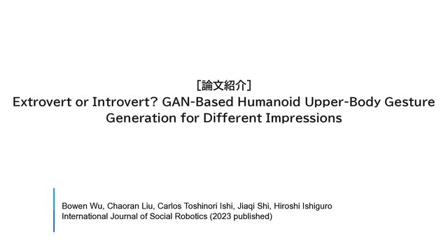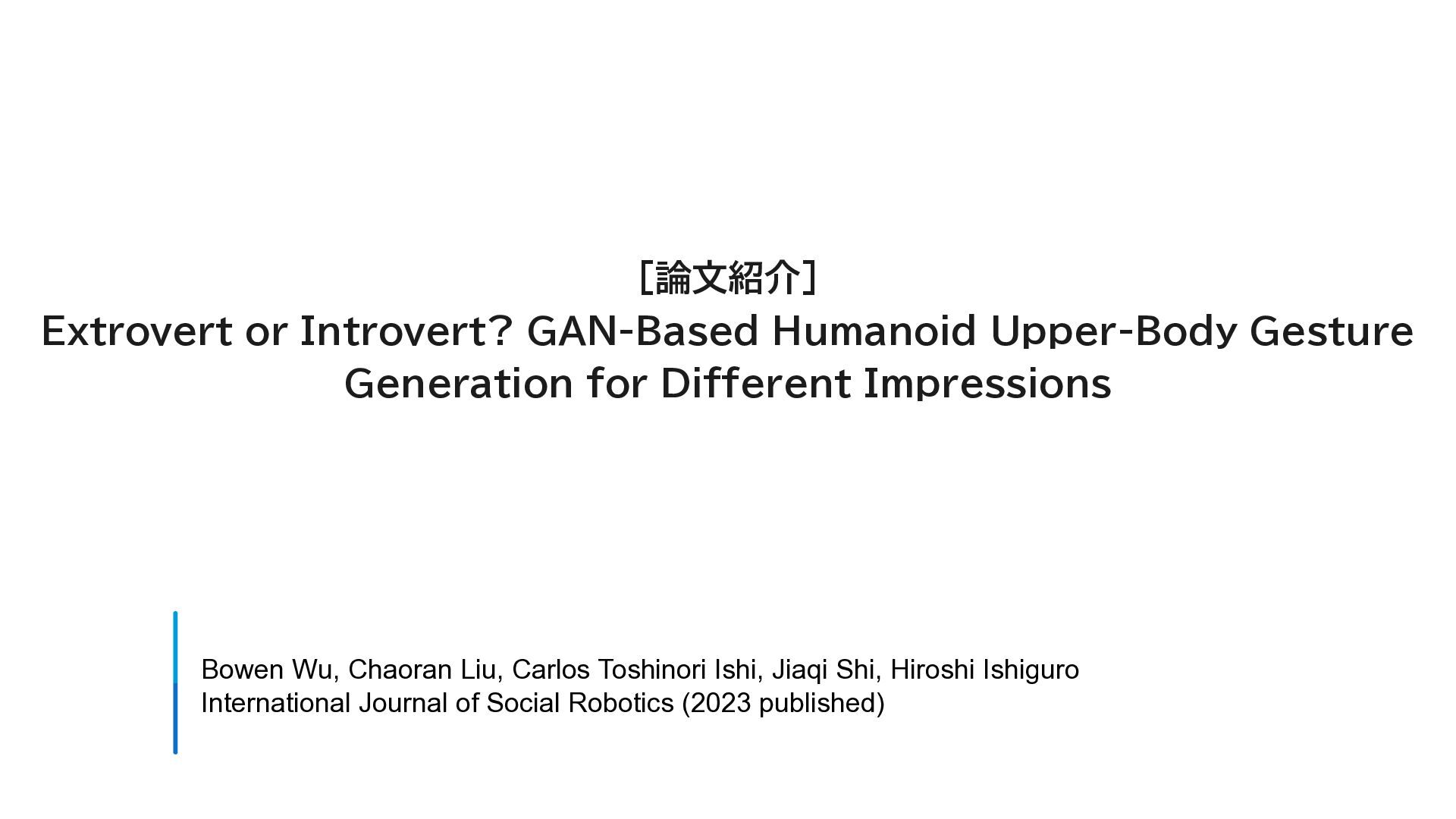 [論文紹介] Extrovert or Introvert? GAN-Based Humanoid Upper-Body Gesture Generation for Different Impressions
