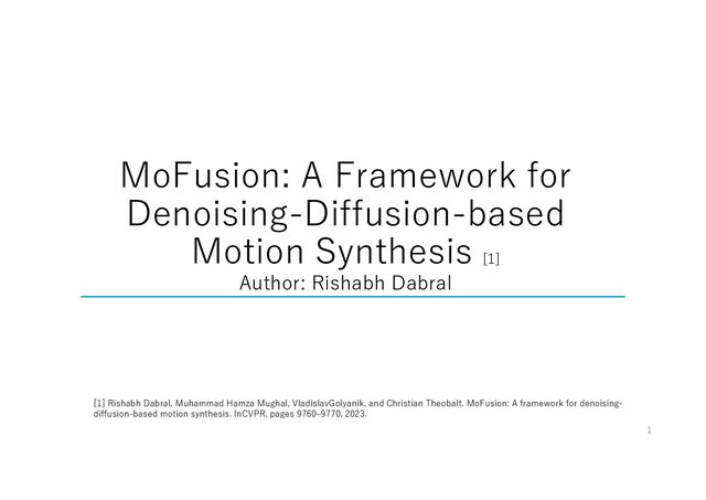 修士1年の5月に、授業で行った論文発表の資料です。推奨された国際学会の中から、各人が論文を選んで発表するという授業でした。自分自身の研究が、diffusionモデルを用いた対話システムの動作生成であるため、同じくdiffusionモデルを用いた研究論文を選びました。