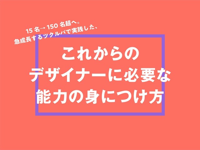 Design Cross - インハウスデザインカンファレンス にて登壇したスライドです。 【15名→150名超へ。急成長するツクルバで実践した、これからのデザイナーに必要な能力の身につけ方】