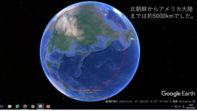 北朝鮮からアメリカ大陸 までは約5000kmでした。