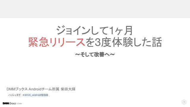 © DMM 1 ジョインして1ヶ月 緊急リリースを3度体験した話 〜そして改善へ〜 DMMブックス Androidチーム所属 柴田大輝 ハッシュタグ