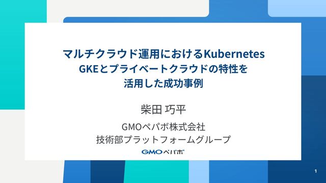 1 マルチクラウド運⽤におけるKubernetes GKEとプライベートクラウドの特性を 活⽤した成功事例 柴⽥ 巧平 GMOペパボ株式会社 技術部プラットフォームグループ