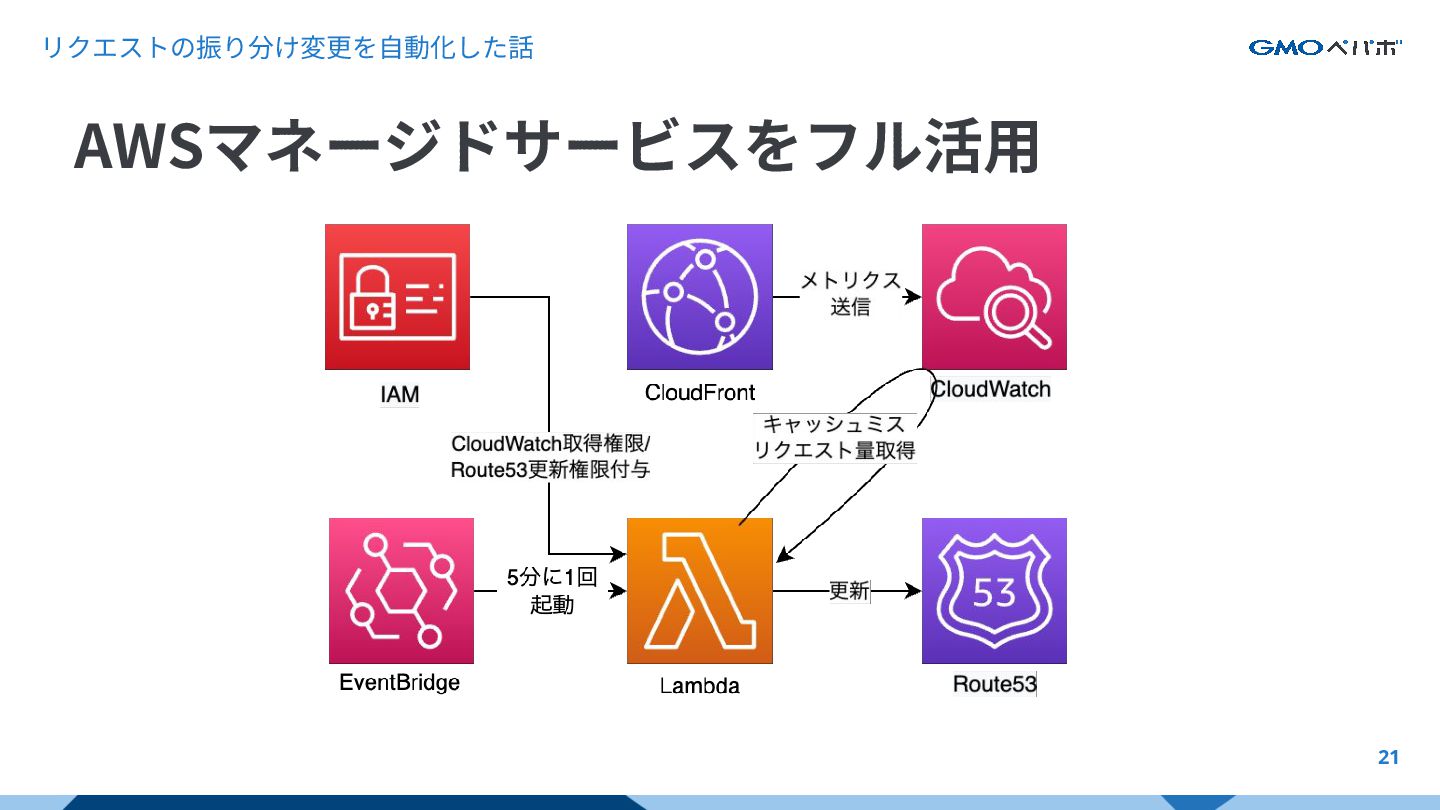 リクエストの振り分け変更を⾃動化した話 21 AWSマネージドサービスをフル活⽤
