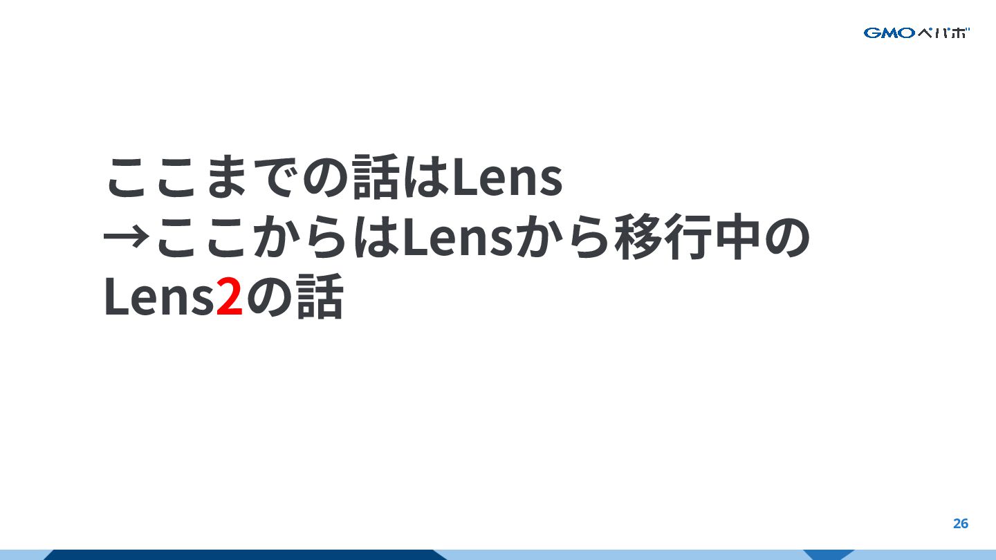 26 ここまでの話はLens →ここからはLensから移⾏中の Lens2の話