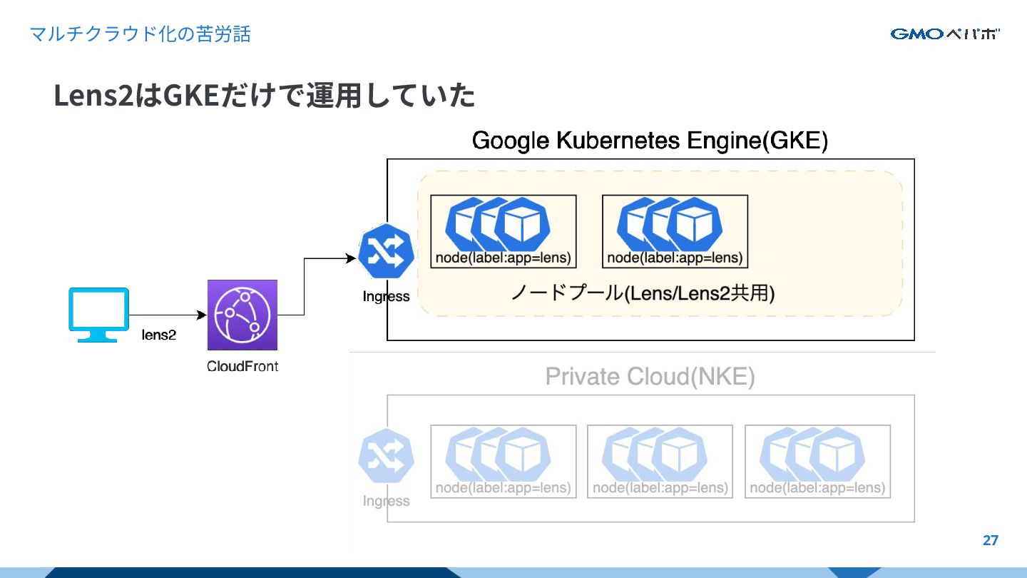 マルチクラウド化の苦労話 27 Lens2はGKEだけで運⽤していた