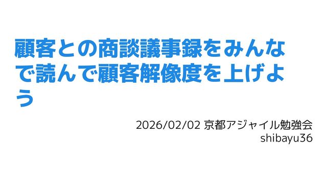 顧客との商談議事録をみんな で読んで顧客解像度を上げよ う 2026/02/02 京都アジャイル勉強会 shibayu36
