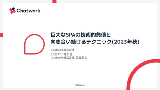 Chatworkのフロントエンドは一画面で18万行を超えるSPAです。プロダクトとしては12年目であり、技術的負債とも向き合う必要があります。 このセッションでは、Chatworkが機能開発を行いながら、安全かつ段階的に移行するために取り入れている手法や、技術的負債についての向き合い方をご紹介します。