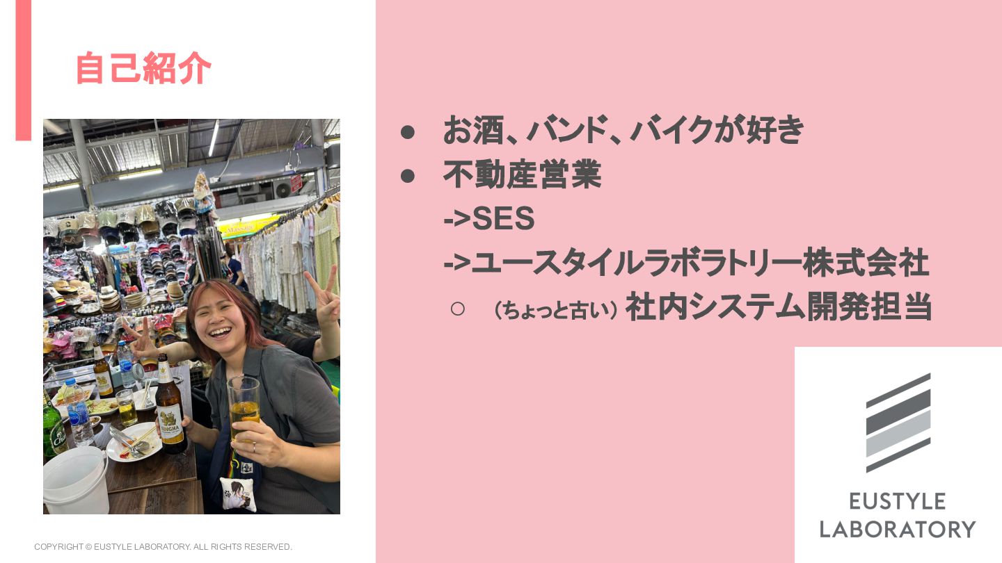COPYRIGHT © EUSTYLE LABORATORY. ALL RIGHTS RESERVED. 自己紹介 • お酒、バンド、バイクが好き