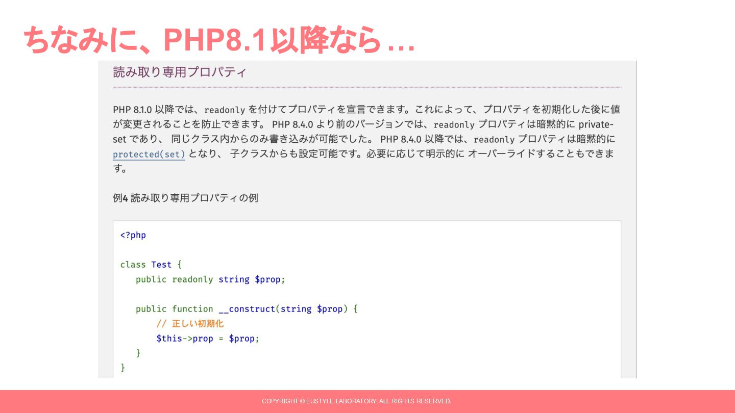 COPYRIGHT © EUSTYLE LABORATORY. ALL RIGHTS RESERVED. ちなみに、 PHP8.1以降なら… 11