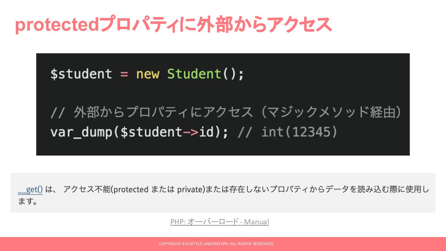COPYRIGHT © EUSTYLE LABORATORY. ALL RIGHTS RESERVED. protectedプロパティに外部からアクセス 4 PHP: