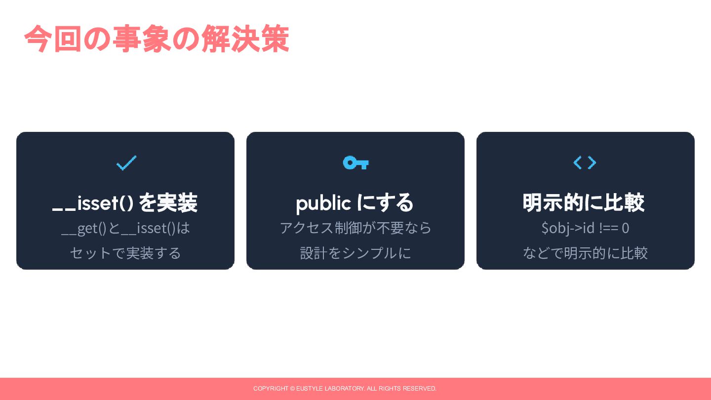 COPYRIGHT © EUSTYLE LABORATORY. ALL RIGHTS RESERVED. 今回の事象の解決策 9 __isset()
